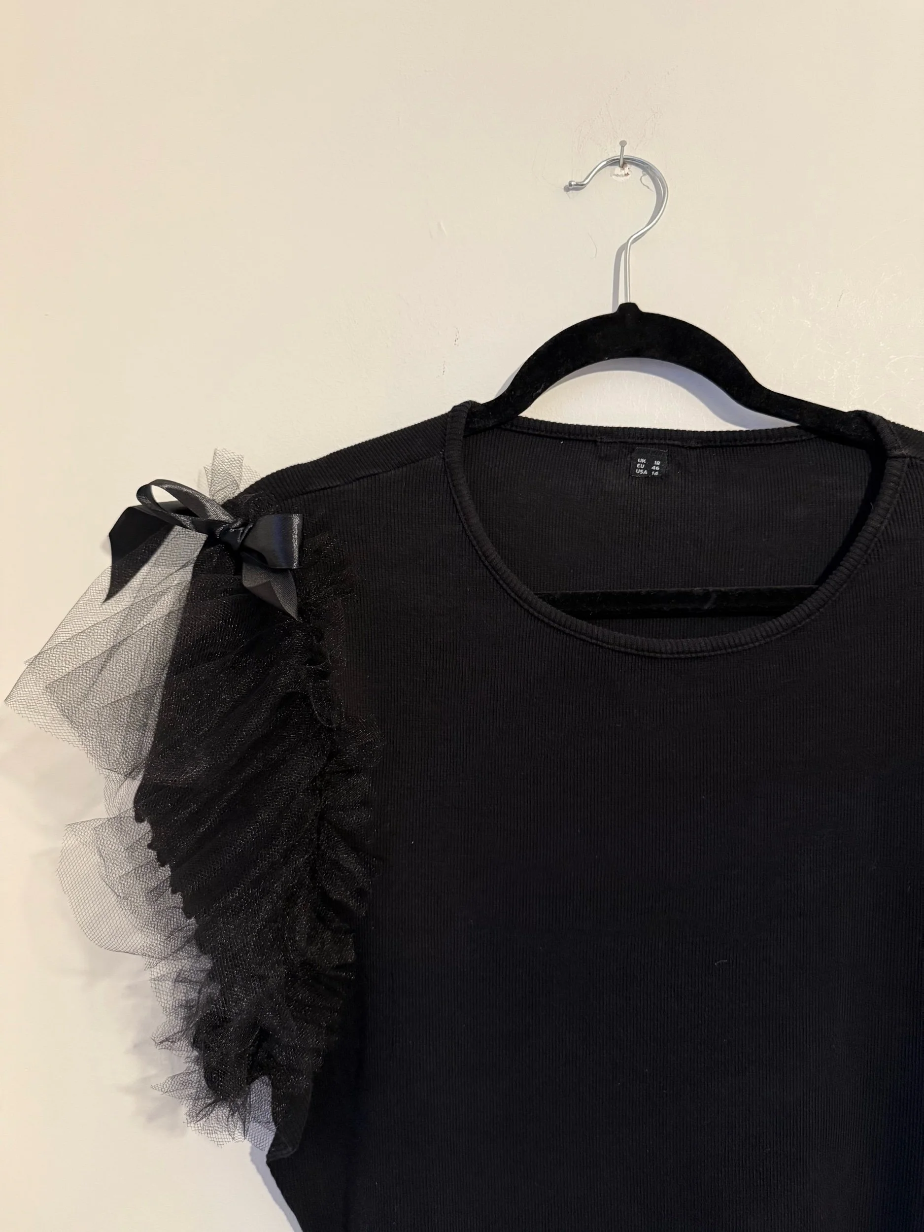 All Products › Tulle & Bow Stretch Tee (size 18) Image 1 of 5 Image 2 of 5 Image 3 of 5 Image 4 of 5 Image 5 of 5 Tulle & Bow Stretch Tee (size 18) £25.00 Stretch tee with tulle and bow detailsPairs perfectly with the tulle and bow mini skirt Size 18 Add To Cart Added! Stretch tee with tulle and bow detailsPairs perfectly with the tulle and bow mini skirt Size 18